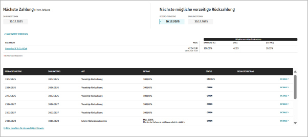 Uzyskaj przejrzysty przegląd wszystkich kluczowych zdarzeń płatniczych – przeszłych, obecnych i przyszłych. W kalendarzu płatności w jednym miejscu przedstawiane są dni obserwacji, płatności kuponu i wykupy przedterminowe, ułatwiając planowanie z wyprzedzeniem. Kalendarz płatności jest zintegrowany bezpośrednio ze stroną zawierającą szczegóły danego produktu.